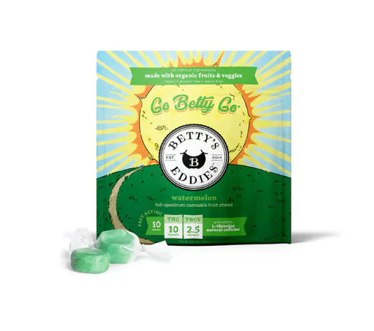 Betty’s knows best - put some pep in your step! Our Go Betty Go watermelon chews are energetically infused with L-theanine, natural caffeine from coffee, and a blend of THC and THCV to help you go, go, go! B