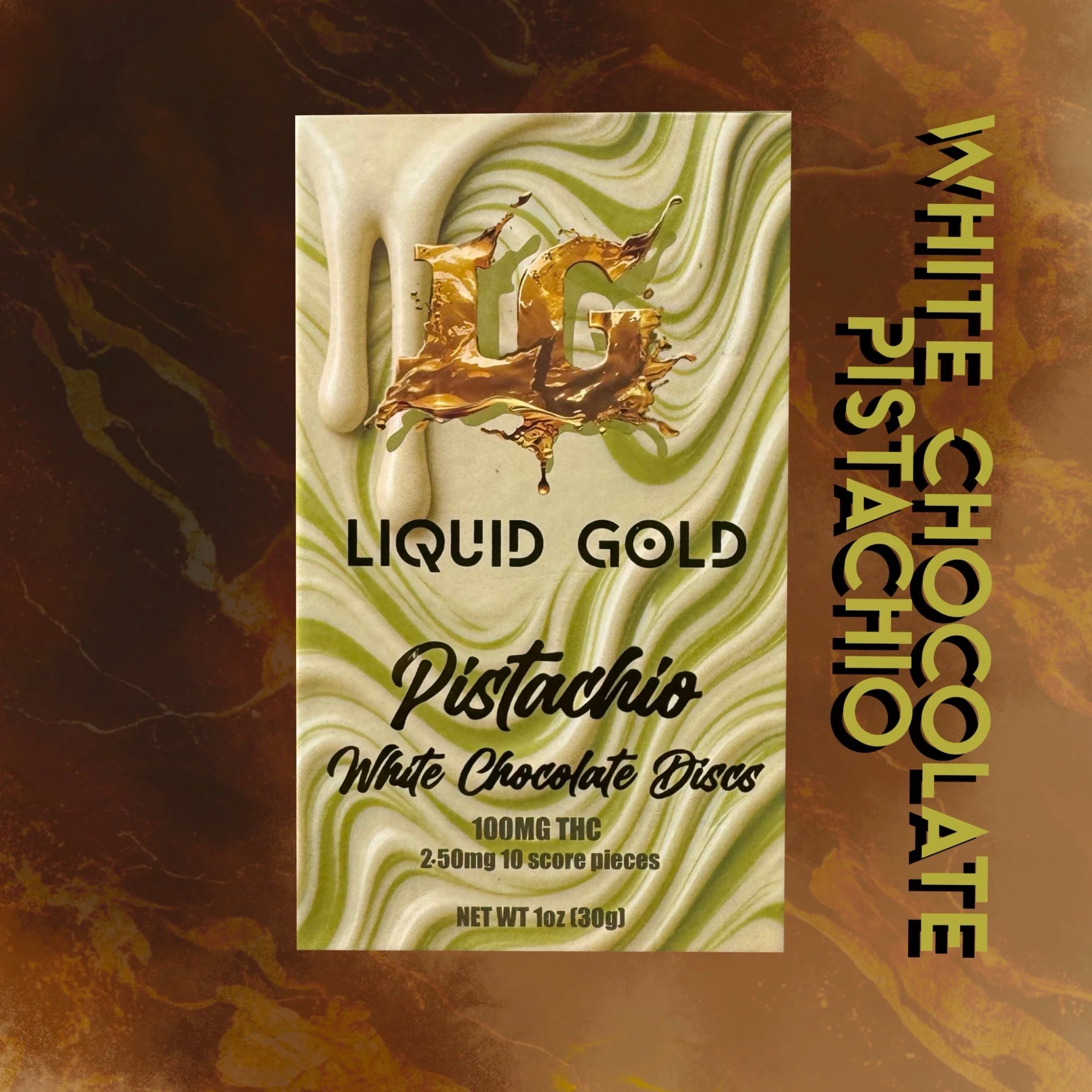 Liquid Gold | Chocolate Disc | White Chocolate Pistachio Cream | 100mg