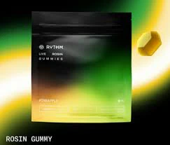 Rythm's Pineapple Solventless Gummies are a premium cannabis edible that combines tropical flavor with the purity of solventless extraction. Each gummy contains 10mg of THC, totaling 100mg per 10-piece package. Crafted using a solventless process involving only ice, water, heat, and pressure, these gummies are infused with live rosin derived from Rythm's award-winning strains. The result is a vegan-friendly, melt-in-your-mouth gummy with authentic pineapple flavor and earthy, strain-specific undertones.