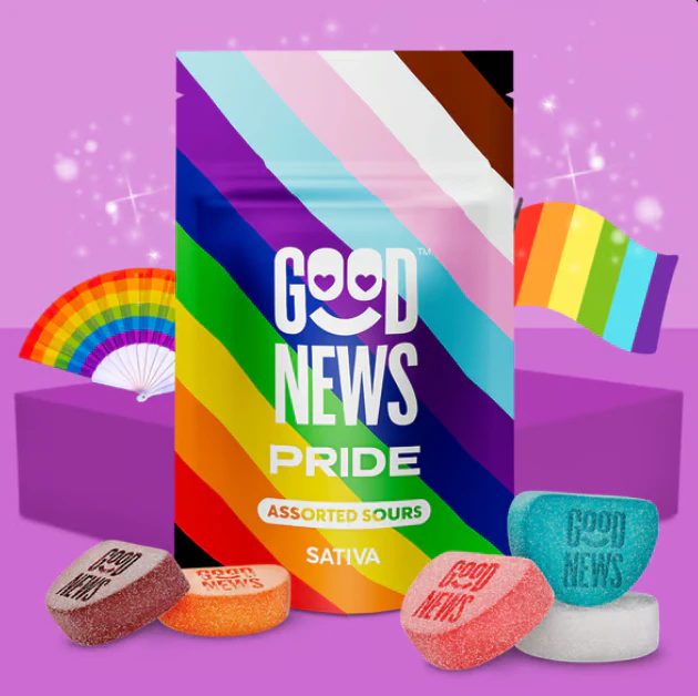 Spread more love with Good News Pride Gummies. 5mg per gummy that represent a rainbow of assorted sour flavors. Perfect for waving your flag proudly and finding a higher level of inclusion.