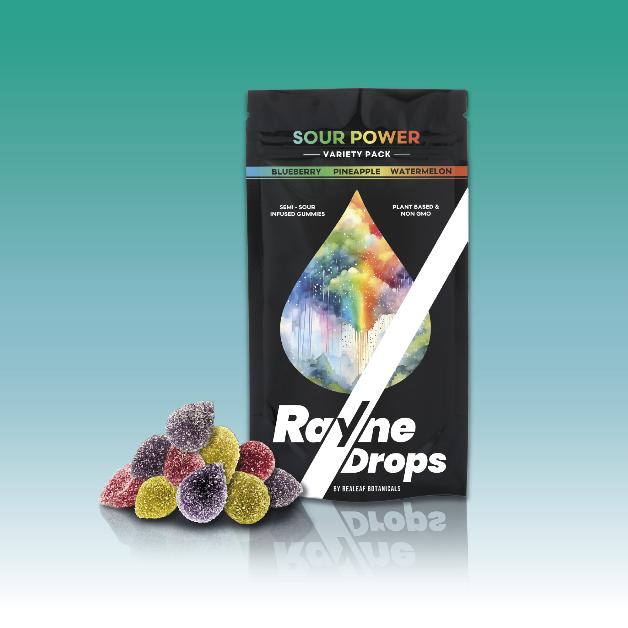 Experience a burst of vibrant flavors with Rayne Drops, our premium cannabis-infused gummies. This variety pack offers a delightful mix of Watermelon, Pineapple, and Blueberry flavors, each expertly crafted to deliver a delicious and uplifting experience. Every Rayne Drop is carefully infused with high-quality cannabis extract to ensure consistency and potency. The gummies are then dusted with a semi-sour sugar coating, adding an extra layer of mouthwatering tanginess that perfectly complements the rich fruit flavors. Whether you're a seasoned cannabis enthusiast or new to the world of edibles, Rayne Drops provide a discreet, convenient, and enjoyable way to savor the benefits of cannabis. Perfect for relaxing after a long day, enhancing your creative pursuits, or simply enjoying a flavorful treat.