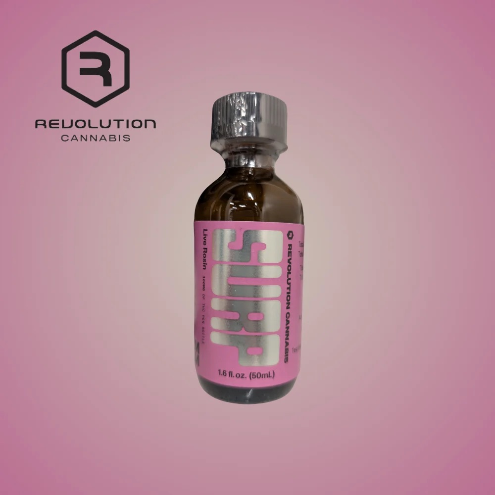 Made for mixing with your favorite beverages, Revolution Live Rosin Surp offers tasty strain-specific cannabis-infused drink concentrates with 100mg of THC per 50mL bottle. Mix. Sip. Enjoy.
