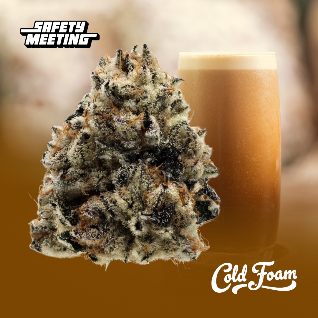 Coldfoam is Safety Meeting’s newest drop, a mysterious hybrid with undisclosed lineage and unmistakable flavor. Creamy and gassy from the first whiff to the final pull, this strain delivers a smooth, velvety smoke that lingers just right. The high stays mellow and functional, perfect for keeping your head clear while easing into calm focus. Coldfoam is made for steady days and easy nights, bringing creamy flavor and balanced energy in one clean hit