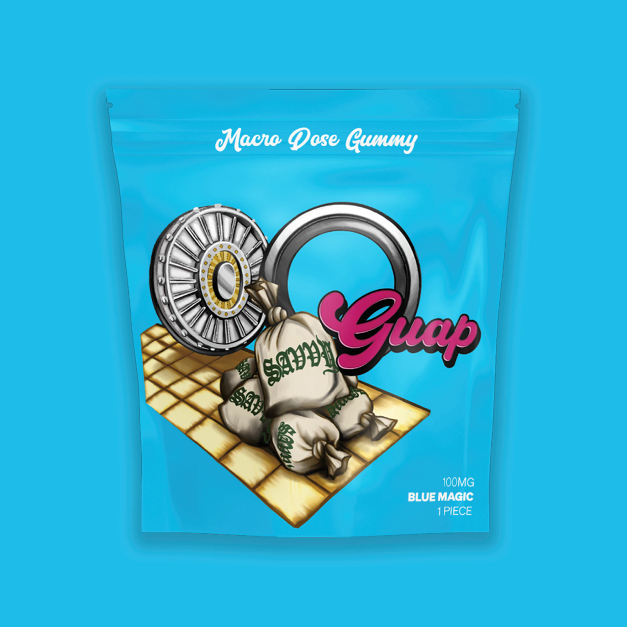 Short stacks, high dose. Savvy Guap gummies are money, loaded with 100 mg THC in one big-bite-sized piece for a high you’ll crave. Taste the green in Blue Magic, an electrifying, lip-puckering blue raspberry flavor.