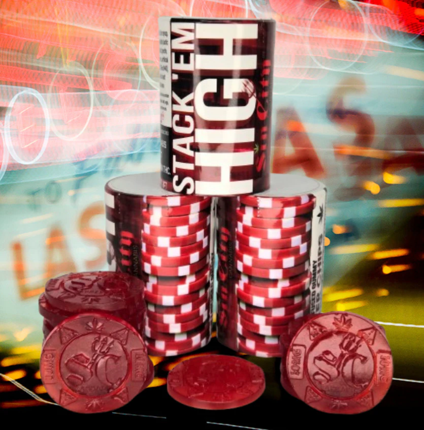 Sin City Cannabis Cherry Poker Chip Gummies, whether you're turning up the energy at a party or keeping things cool at home, this is the only sidekick you need. Each juicy gummy is infused with 10MG THC plus a bold wild cherry flavor that’s tastes as awesome as the experience. THC delivers a euphoric lift to awaken your senses. boosting your mood naturally. Say good-bye to all the tension, head to toe. Our gummies energize and elevate your vibe. No alcohol. No crash. Just full-body freedom and feel good fun. Sin City Cannabis Cherry Poker Chip Gummies — your go-to for letting loose, lighting up the night, and feeling unstoppable. These beauties are stackable, rollable, and edible—finally, a bet you can actually eat.