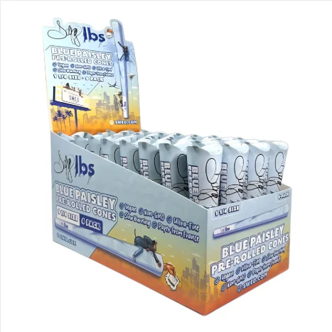 The SWED Blue Paisley Pre-Rolled Cones are designed for those who appreciate quality and convenience. Made from ultra-fine, slow-burning French paper, these vegan and non-GMO cones ensure a smooth and even burn. Each cone is pre-rolled and ready to fill, allowing for a hassle-free smoking experience. The bold blue paisley pattern adds a touch of style to your sessions.